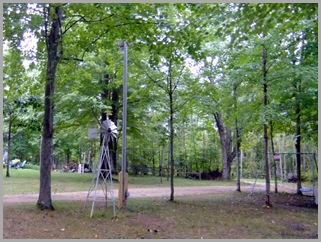 After picking up the tools and taking a quick shower (I was laying in the dirt to install the hardboard), Miss Judy made us some hot chocolate and we headed for the campfire. We chatted with Ray and Pat for about an hour before coming home for dinner; the other half of the sandwich that we brought home in a kitty box from Arnie’s.